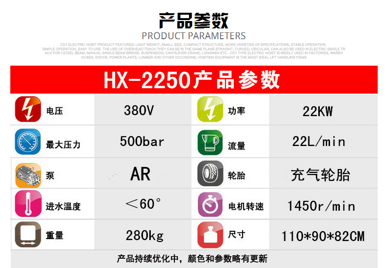 工业级超高压冷水清洗机,清洗压力高达500公斤流量22升/分钟,采用陶瓷柱塞泵及多层工业级密封件,低速电机,设备可连续工作使用寿命长,胜任各种高难度的工业清洗,可用于釜罐、热交换器、水泥厂预热室结皮、格栅油漆、管道疏通、铸件除锈、广泛于造纸厂、化工厂、汽车制造厂等。