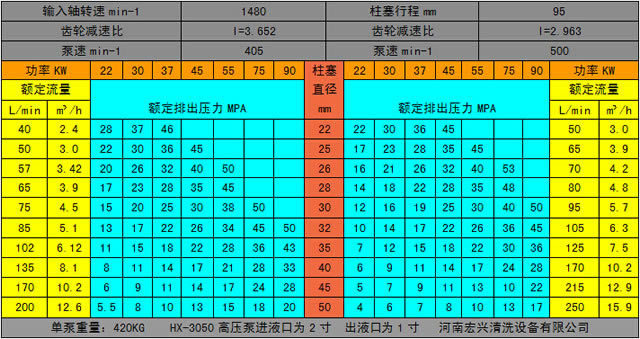 HX-3050型高压泵参数表: