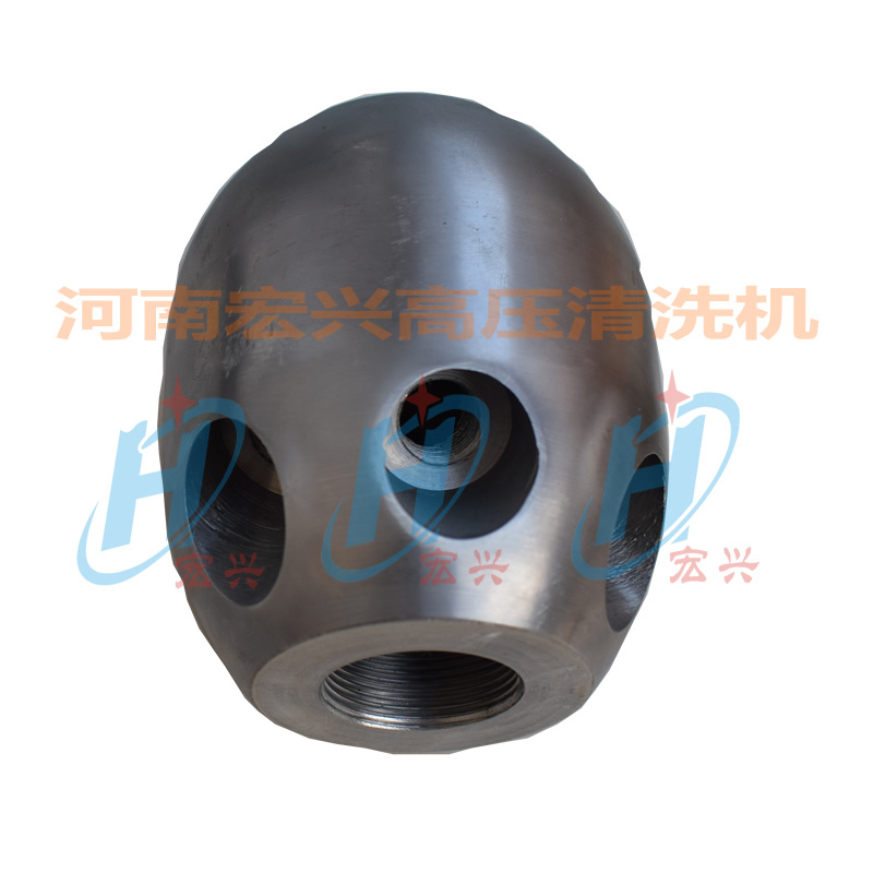 工作原理:将管道疏通喷头通过高压胶管与高压泵连接,并将喷头直接放在需要疏通的管道口,当高压泵工作时利用喷头后方喷出的高压水所产生的反作力,将喷头迅速向前推,并利用喷头后方和前方的喷孔所产生的高压水射流迅速的将管道清洗干净,当收管器把喷头往外拉的同时,高压水流将管束内冲洗掉的污垢排除管外。 应用领域:用于疏通、清洗、市政、小区、工业园区管道中的堵淤和污物。